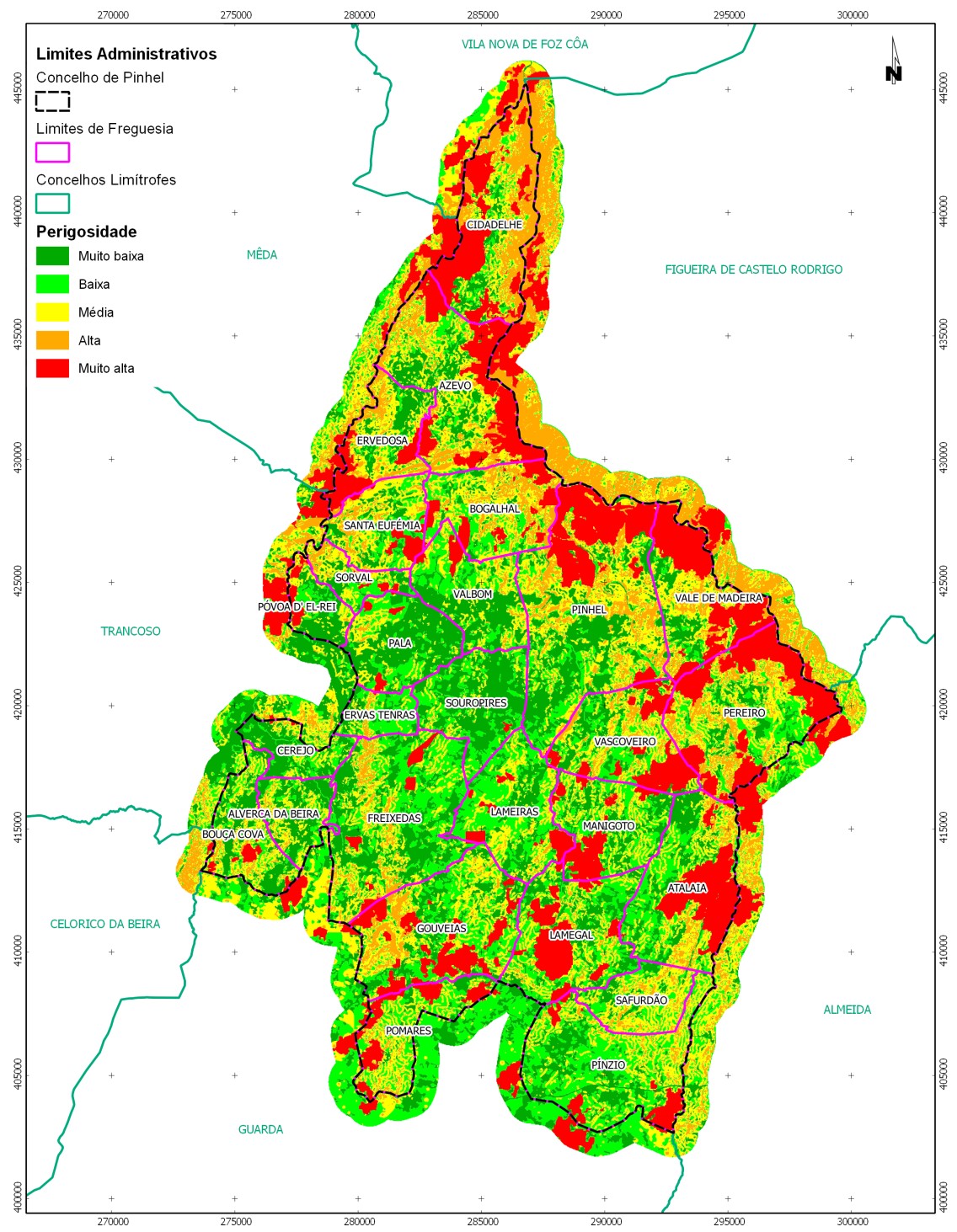 Forest Fire Hazard and Risk Maps of Pinhel, implemented with Open Source Software.