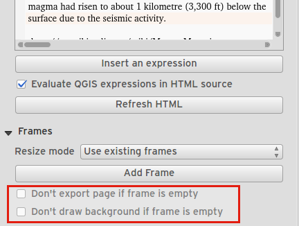 For table or HTML frames, a checkbox now controls whether the containing page should be exported when the frame is empty.