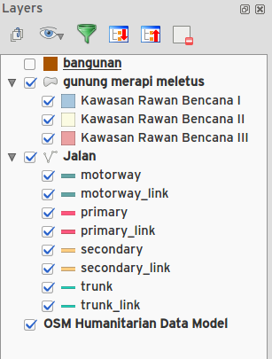 • Visibility groups of map layers in layer tree. This new toolbar button allows quick changes between the groups of layers that should be visible.
