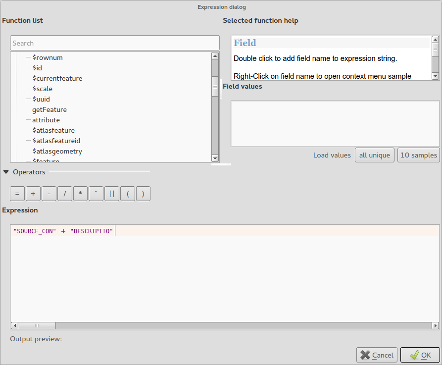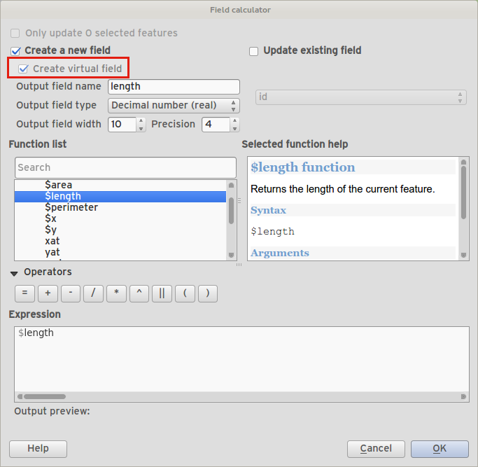 Sometimes you want to have an attribute that is calculated and that is always 'fresh' - reflecting the current state of the feature properties. Now you can add virtual fields to your table which are based on an expression.