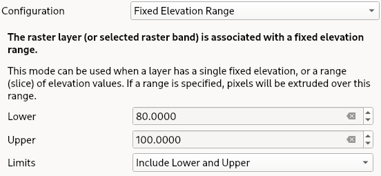 A new option has been introduced for specifying how elevation is associated with raster layers. It permits a fixed elevation range to be set for the layer and can be used when the layer has a single fixed elevation or a range (slice) of elevation values.