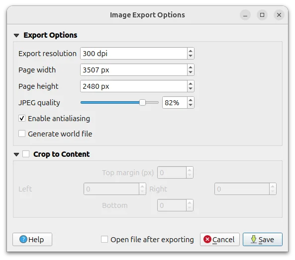 A new quality parameter has been added to the JPEG/JPG Image export options within print layouts to provide users more control of their export options.